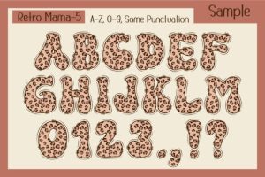 Introducing “Retro Mama” a bold and stylish vintage retro vibe color font that celebrates the essence of a fashionable, groovy mom! Featuring a classic groovy font style with a chic leopard pattern and a warm vintage color palette, this 5-color font brings a trendy yet nostalgic touch to your designs. Perfect for Mother’s Day posters, quotes, T-shirts, custom names, DIY craft projects, and more, “Retro Mama” exudes confidence and charm. Plus, it comes with 20 matching doodle cliparts of beautiful flowers, making it the ultimate font for moms who love retro fashion and timeless style!