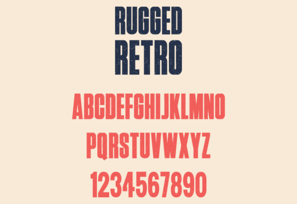 Experience the allure of singularity with our ‘Rugged Retro’ sans-serif typeface. Famous for its cutting-edge and one-of-a-kind design, Rugged Retro emerges as more than just a choice of text style. Each hard, unrefined stroke is overlaid with a weathered texture, fostering an atmosphere steeped in tenacity and defiance.