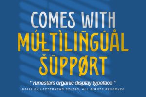 Runestars is an organic display typeface with unique characters and ligatures. This font was perfectly made to be applied in logos, invitations, labels, magazines, books, greeting/wedding cards, packaging, fashion, make-up, stationery, or any type of product with advertising purposes. Add it to your fonts’ library, and it will make your work a true piece of art!