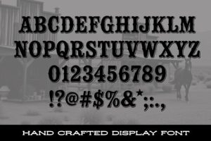 Ryehouse is a bold, hand-drawn Western display font that carries the soul of a dusty saloon and the grit of a whiskey label. Each letter feels stamped, weathered, and full of character — like it’s been pressed into aged oak. Thick lines, rough edges, and organic curves give it that authentic vintage charm, perfect for posters, signage, branding, and anything that calls for a taste of the frontier.