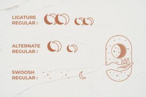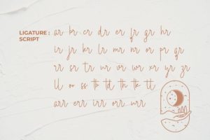 Saturday Moon is a modern and elegant duo font (script and serif.) The Script font includes ligatures to make everything look totally hand-done and alternates for each letter. The Serif font has special rounded characters (moon/lunar) to bring differentiation to your designs!