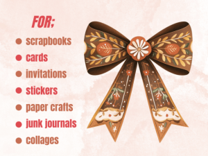 📒 Scrapbooking – Decorate your holiday memory books with beautiful bow illustrations.