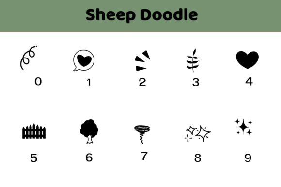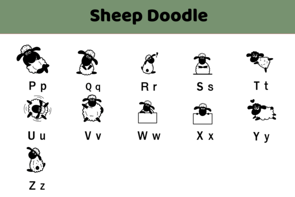 Sheep Doodle is a playful dingbat font featuring adorable sheep illustrations. Each character in the font showcases a unique, cute sheep design, perfect for adding a whimsical touch to your projects.