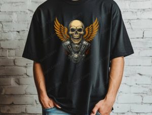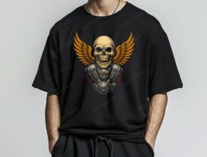 💀🏍️ Ride with power and freedom! This badass PNG features a detailed illustration of a skull with golden wings, fused with a powerful V-twin motorcycle engine. Perfect for sublimation, it captures the spirit of the open road and biker culture.