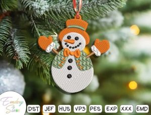 Brighten up your Christmas tree with this cheerful snowman embroidery design! Featuring a smiling snowman with a top hat, bow tie, and colorful details, this design is perfect for holiday ornaments, festive patches, and handmade winter gifts.