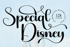 Special Disney is a neat and beautiful handwritten font described by an elegant touch, perfect for your favorite projects. Fall in love with its incredibly distinct and timeless style, and use it to create spectacular designs!