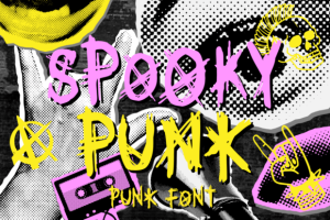 Spooky Punk – Punk Font is an electrifying digital font that captures the wild essence and rebellious spirit of the punk rock era. Inspired by urban street art and raw musical vibes, this unique typeface features chaotic, hand-drawn strokes, exaggerated brush textures, and intentionally messy lettering. Each character is distinctively designed to evoke an energetic, vibrant, and defiant attitude, making it a perfect choice for any creative project seeking a bold, gritty, and unapologetic visual impact. Its layout complements the anarchic aesthetics typically associated with punk and street subcultures, showcasing uneven lines, jagged edges, and dynamic overlapping styles.