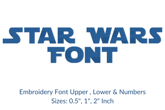 Star Wars Font Embroidery Design. This is a high-quality embroidery font that will help you personalize your designs. Use this embroidery font to write names, dates, or quotes on any fabric you wish.