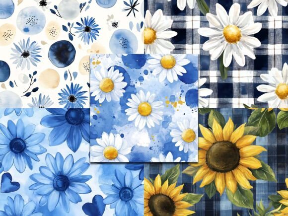 ☀️🌼 24 Watercolor Summer Daisy Pattern Digital Paper 🌼☀️