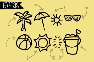 Tags: Beach Font, Beach Party, Beach-themed, Casual Font, Decorative Font, Fun Font, Hand-drawn Font, Palm Tree Icons, Playful Font, Sand Bucket Icons, Summer Font, Summer Vibes, Sun Icons, Tropical, Whimsical