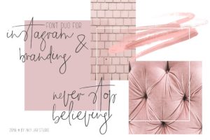 The Girl Font Duo is a perfect combo for Instagram posts, quotes or stories as well as for feminine branding. The script version has a loose, messy signature style and the sans is a thin, elegant, block font which is good looking on its own as well as combined with the script.