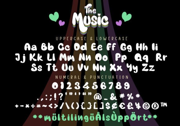 The Music Font is a lovely display font with a retro style. It will work great for comic book style, online games, cards, love shirts, posters, movie titles, eye-catching social media posts, or anything that requires youthfulness and courage.