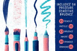 Includes additional elements such as 26 brushes for pencils, pastels, inkers, sponges and sprayers.