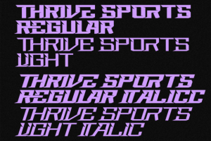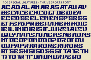 Thrive Sports was built with OpenType features and includes 100 ligatures, alternate, numbers, punctuation, and it also supports other languages.