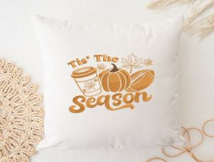Celebrate autumn with cozy icons like coffee, pumpkin, and football in one design—great for seasonal pillows, sweatshirts, and tote bags.