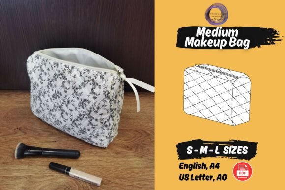 Pattern Specs: makeup bag, cosmetic bag, travel organiser bag, boxy pouch, zipper travel makeup bag, travel pouch, hairtool bag.