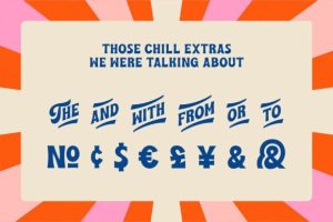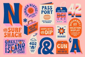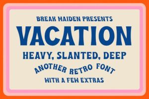 Vacation Display was inspired by psychedelic posters of the 60s and 70s, Hawaiian matchbook advertisements, and our curious love for the Trader Joe’s logo. This “retro” display font comes in 3 different styles along with a few chill extras.