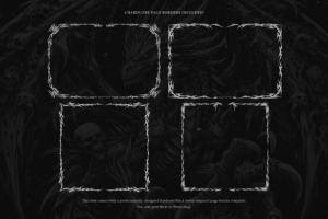 To elevate your designs even further, Vermithor includes 4 exclusive Black Metal Page Border Templates. These Photoshop-ready templates feature intricate, hardcore-inspired artwork, perfect for framing your text or creating fully immersive compositions.