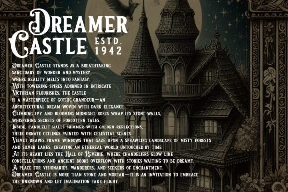 Immerse yourself in the timeless beauty of the Victorian era, where every letter is crafted with meticulous attention to detail, embodying the grandeur and opulence of the period. This font features intricate flourishes, ornate serifs, and graceful curves, making it a perfect choice for designers and artists seeking to infuse their projects with a touch of historical charm.