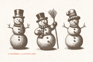 Bring a warm, nostalgic holiday feel to your projects with this collection of vintage, engraving-style illustrations. Inside you’ll find 40 highly detailed elements – Santa Claus, Christmas trees, reindeer, postage stamps, envelopes, pine branches, cones, snowmen, and festive compositions.