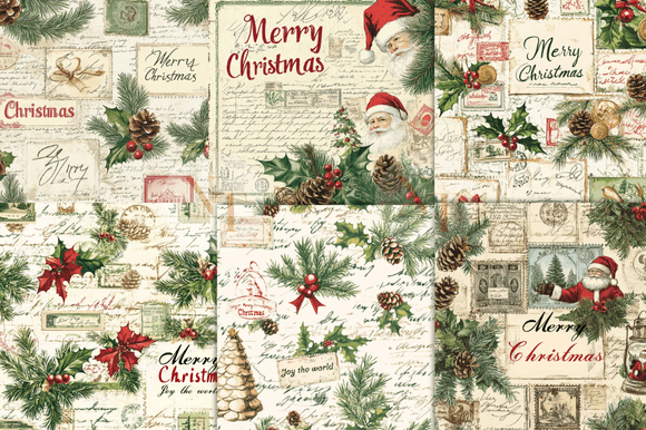 Bring festive charm to your holiday crafts with this Vintage Christmas Letter Digital Paper Pack!