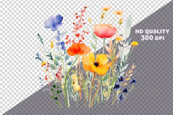 Watercolor Meadow Flowers Clipart, Wildflower Floral PNG, Png Bundle, Landscape Clipart, Clipart Bundle, Commercial Use, Clipart, Flower Art, Original watercolor print, wildflowers, vibrant colors, original art, wildflower picture.