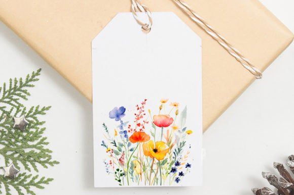 Wall Art Set Watercolor Wildflowers Clipart.