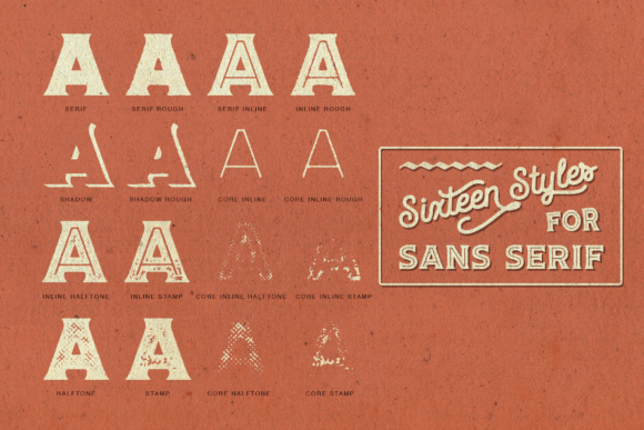 Way to Alaska this is a vintage font collection inspired by old signboards, labels and banners. This collection includes 20 font styles – Serif has a regular, rough, inline, inline rough, stamp, halftone, inline halftone, inline stamp, shadow, also cores also have a separate style for greater customization. Script has a regular, rough, stamp, halftone style. The script font includes 4 styles (regular, rough, bold, bold rough) and it includes a lot of alternates for Uppercase and Lowercase.