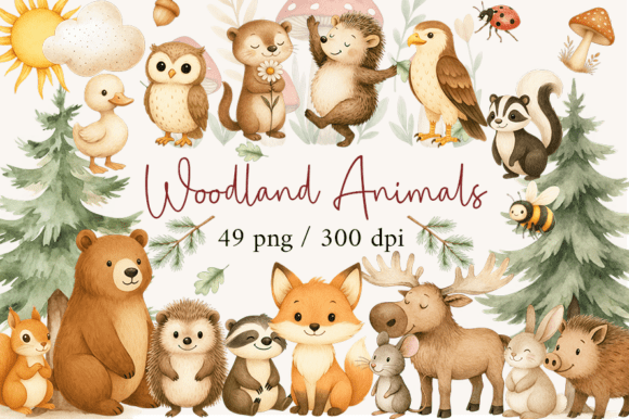 Bring a whimsical forest touch to your creative projects with this charming Woodland Animals Clipart set!