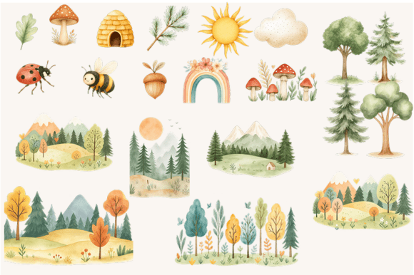 This bundle includes 49 high-quality PNG illustrations featuring adorable forest animals, natural elements, and cozy boho accents – perfect for: