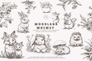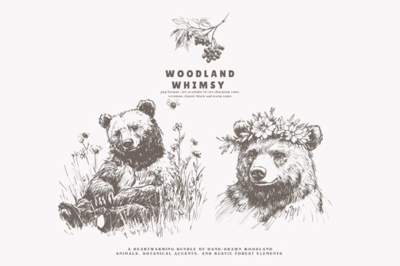 A charming set of woodland clipart featuring hand-drawn forest animals, botanical sketches, and vintage details. Ideal for wedding clipart, rustic stationery, nursery art, and creative projects. Available in sepia and black ink styles, perfect for cozy, natural designs.
